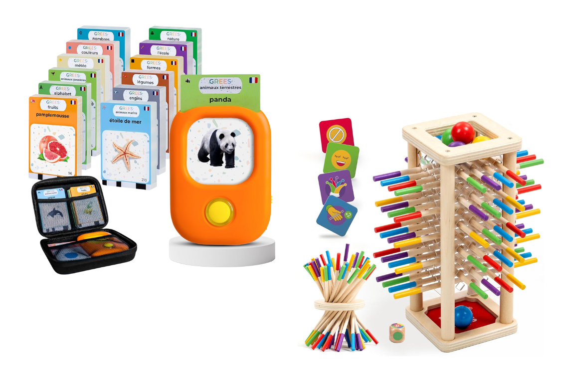 - Matériel de motricité fine (pinces, transvasement, etc.).